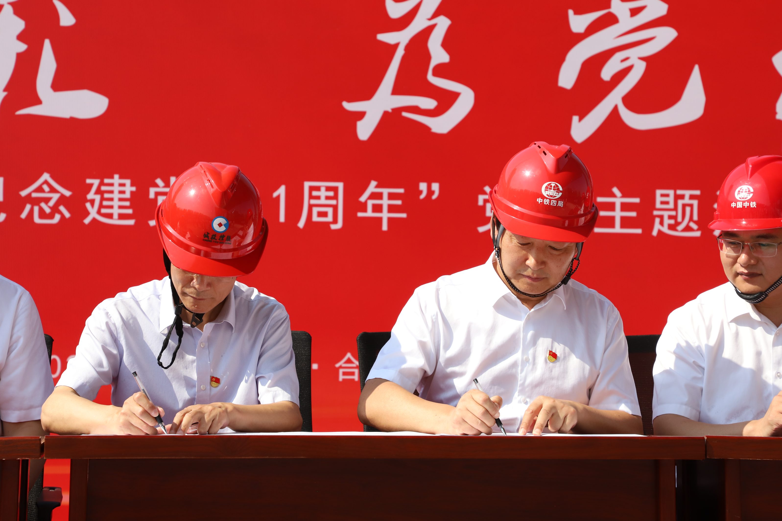 7月1日上午,由城投公司党支部主办,中铁四局四公司承办的“为党旗添彩 为党徽增光”——宿松路快速化改造项目党建共建暨项目现场推进会在宿松路快速化改造项目三标段举行。城投公司全体党员和宿松路快速化改造项目参建方共同以“建设者”特有的方式为党庆生。